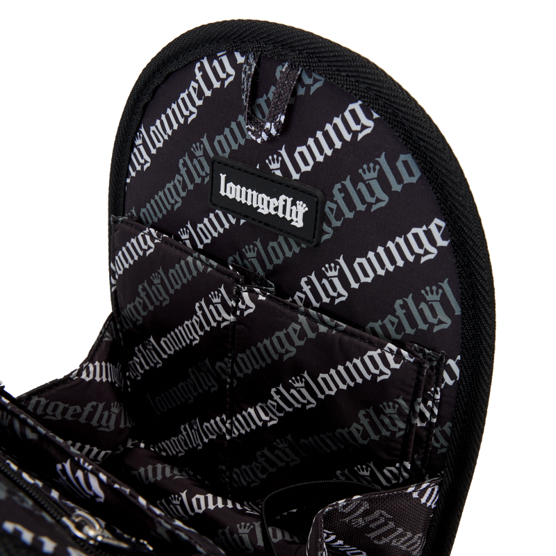 Get the inside scoop on keeping your backpack neat and organized! Our Loungefly Mini Backpack Insert Organizer is a convenient way to travel. This insert comes with utility loops, making it easy to drop the organizer inside a standard-sized Loungefly mini backpack—and take it out again. Compartments, pockets, zippers, and nylon straps with lobster clips and D-rings will help you keep your items secure and within reach on daily outings. The Loungefly logo print motif adds a stylish flair. Show off your fandom while this heavy-duty and durable organizer does the heavy lifting to keep everything in place.